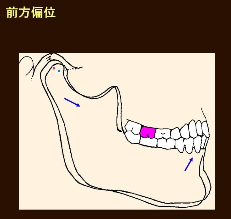 12. 下顎変位と筋の痙攣が加わって下顎の関節にずれができてきます。