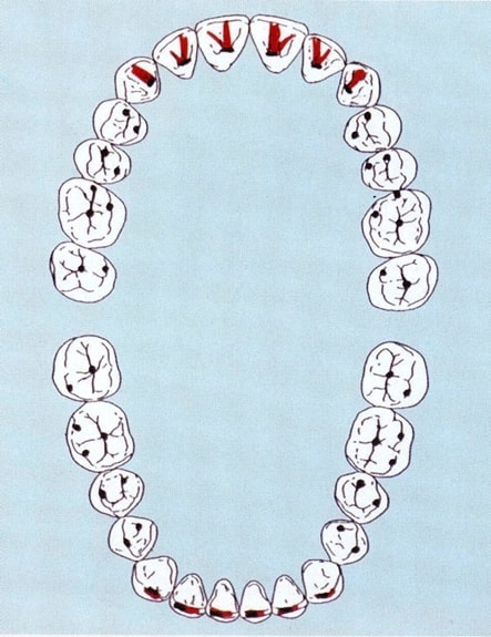 5. 対合している下顎の歯がその高い部分を避けるように変位します。そうして他の歯に磨耗が起こります。