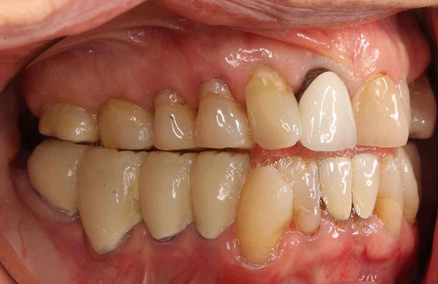 上顎奥歯に咬み合わせの高い金冠を入れたとします。次のようなことが次から次へと起こってきます。