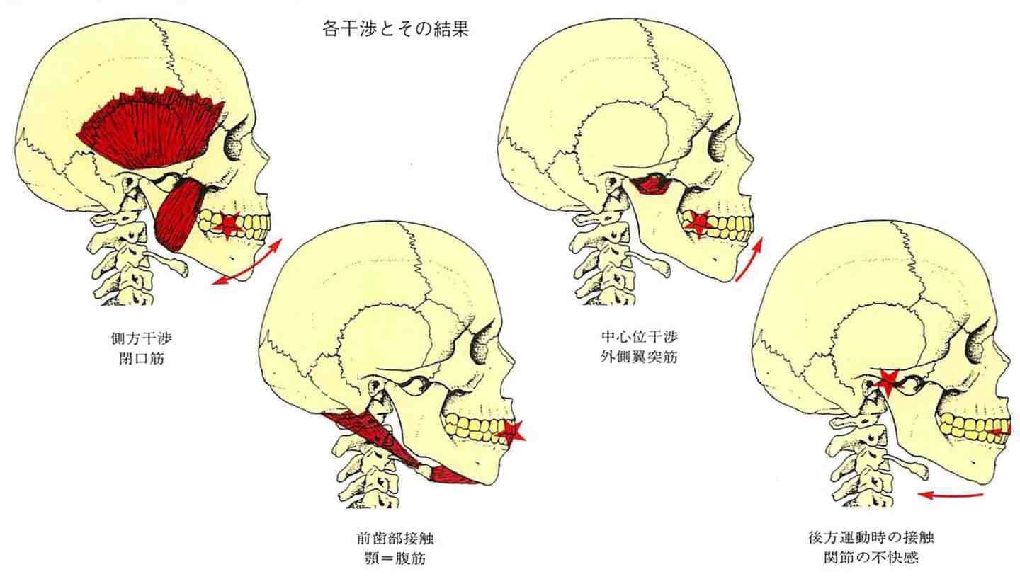 徴候は一つの咬合干渉の結果であり、これに伴う寄与因子は、