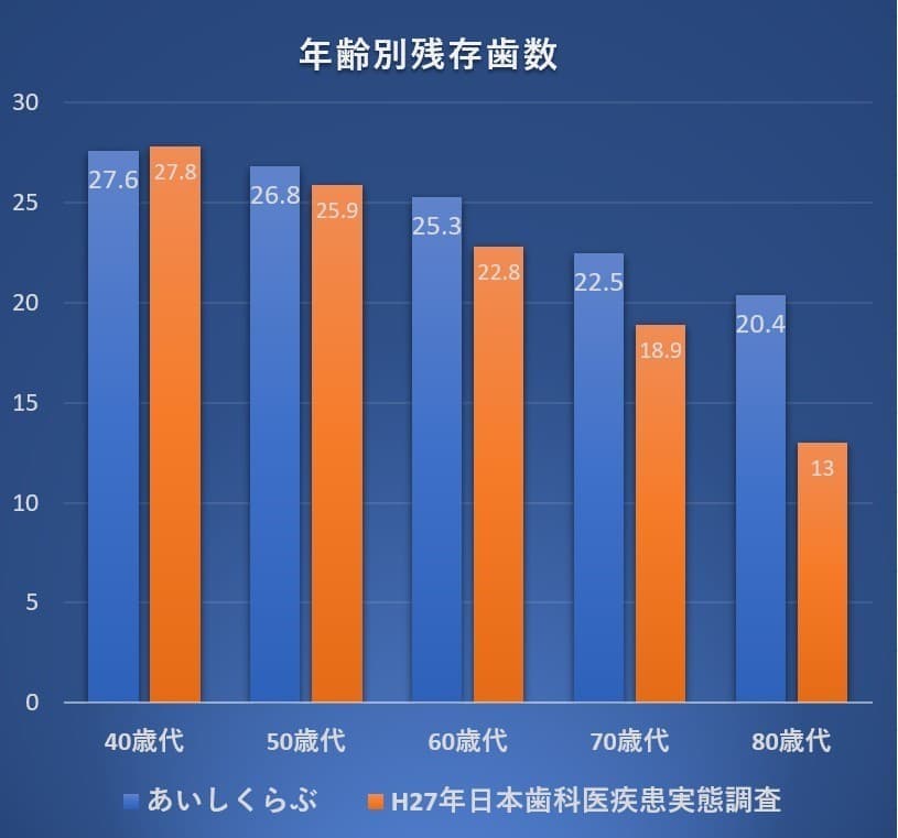 川村歯科で長期間15年以上メンテナンスを受けておられる方の歯の数は