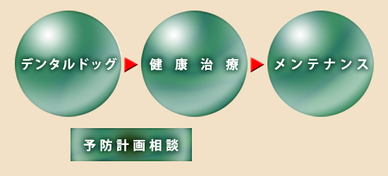そのためには、これまでムシ歯をつくり、歯周病にかかってきた原因をつきとめることによって、今後、それらを防ぐための“予防の計画”を、あなたとともに立てることから始めなければなりません。